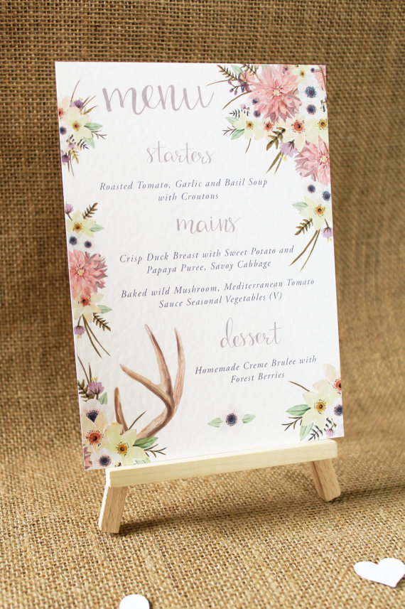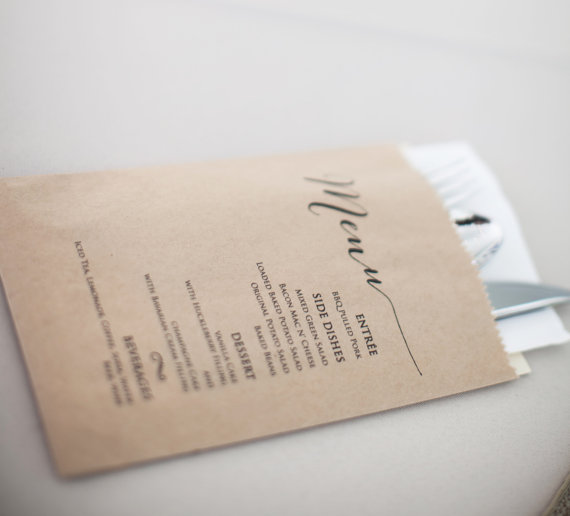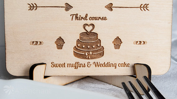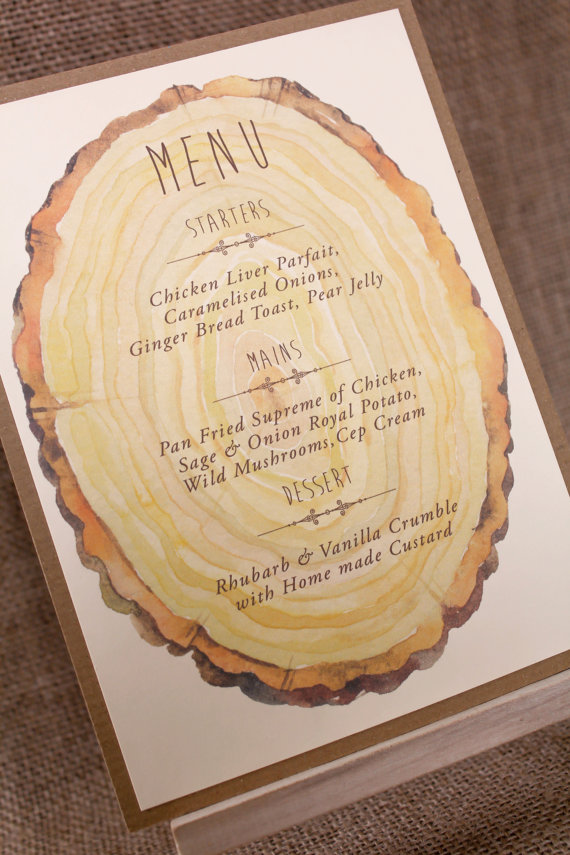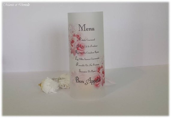 Piękne menu weselne, które można umieścić na świecy lun innym przedmiocie.