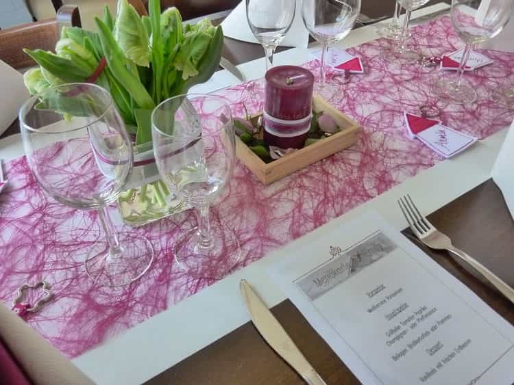 Tutaj przede wszystkim należy mieć na względzie baldachimy (materiałem, który będzie umieszczony przy suficie), kolor obrusów, serwetek, ustawienie kwiatów czy świec. To jedne z podstawowych kwestii – niejako obowiązkowe elementy dekoracji. Można oczywiście pomyśleć o dodatkowych ozdobach. Wszystko zależy od wybranego motywu.
