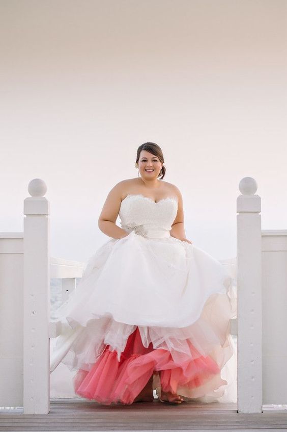 Nikt nie mówi, że kobiety noszące nieco większe rozmiary koniecznie muszą wybierać biel, wszak jak najbardziej wchodzą tu w grę też inne barwy sukien. Co o nich myślicie?