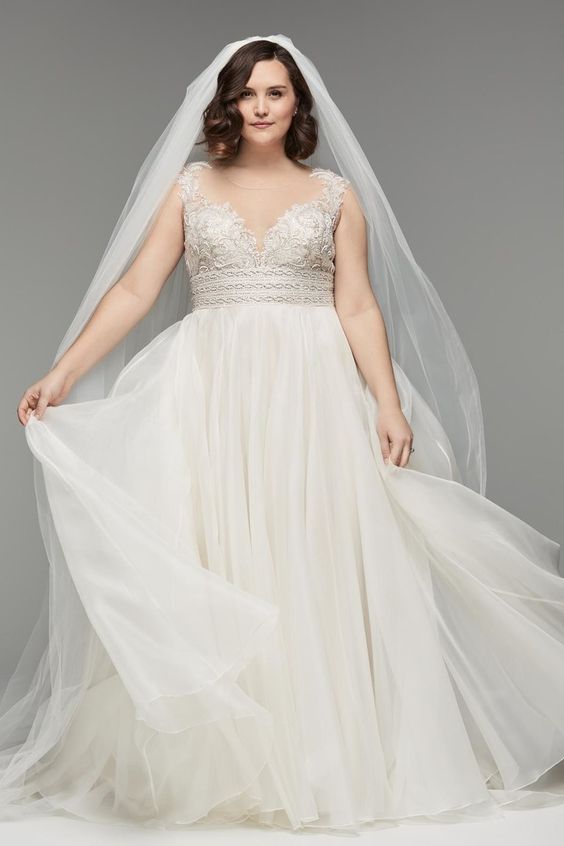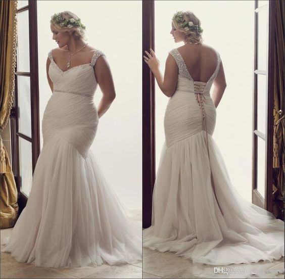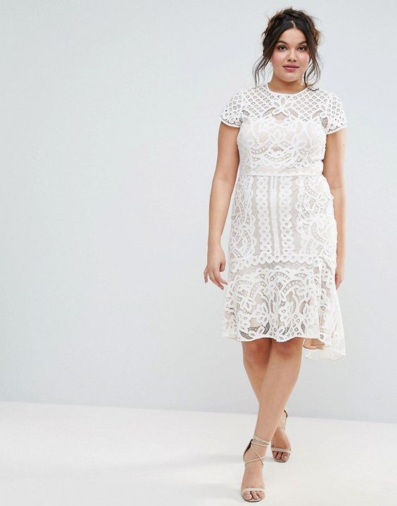 Okazuje się, że kobiety noszące nieco większe rozmiary niezwykle często mają bardzo zgrabne nogi – a zwłaszcza łydki. Warto byłoby ten fakt podkreślić, wybierając nieco krótszą od klasycznej suknię ślubną. I będzie wspaniale!