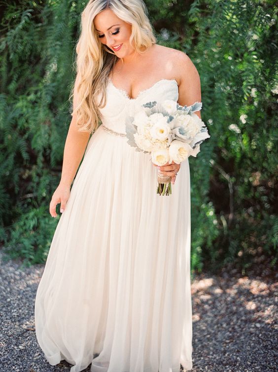 Okazuje się, że Panny Młode plus size bardzo często mają niezwykle kuszące i bardzo zgrabne ramiona. Żal byłoby zatem je ukrywać. Dlatego też projektanci lansują w tym przypadku takie modele kreacji, które ukazują to, co w damskiej sylwetce najlepsze. I jest pięknie!