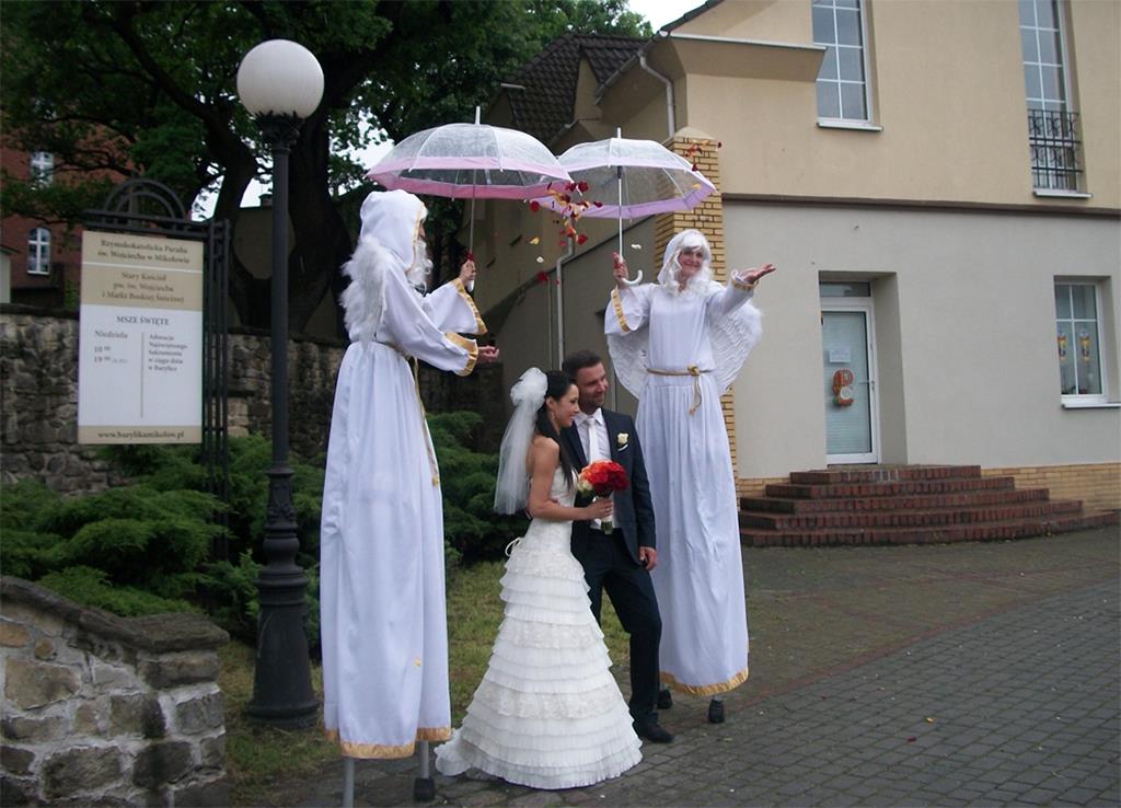 To z pewnością fantastyczna atrakcja. Aniołki na szczudłach mogą czekać na Parę Młodą przed kościołem lub pojawić się dopiero na przyjęciu weselnym. Zazwyczaj poza przedstawieniem również rozdają cukierki, sypią płatkami kwiatów oraz pozują do zdjęć razem z Nowożeńcami i gośćmi. To z pewnością fantastyczna atrakcja. Przedstawienie dwugodzinne kosztuje około 1000 złoty.