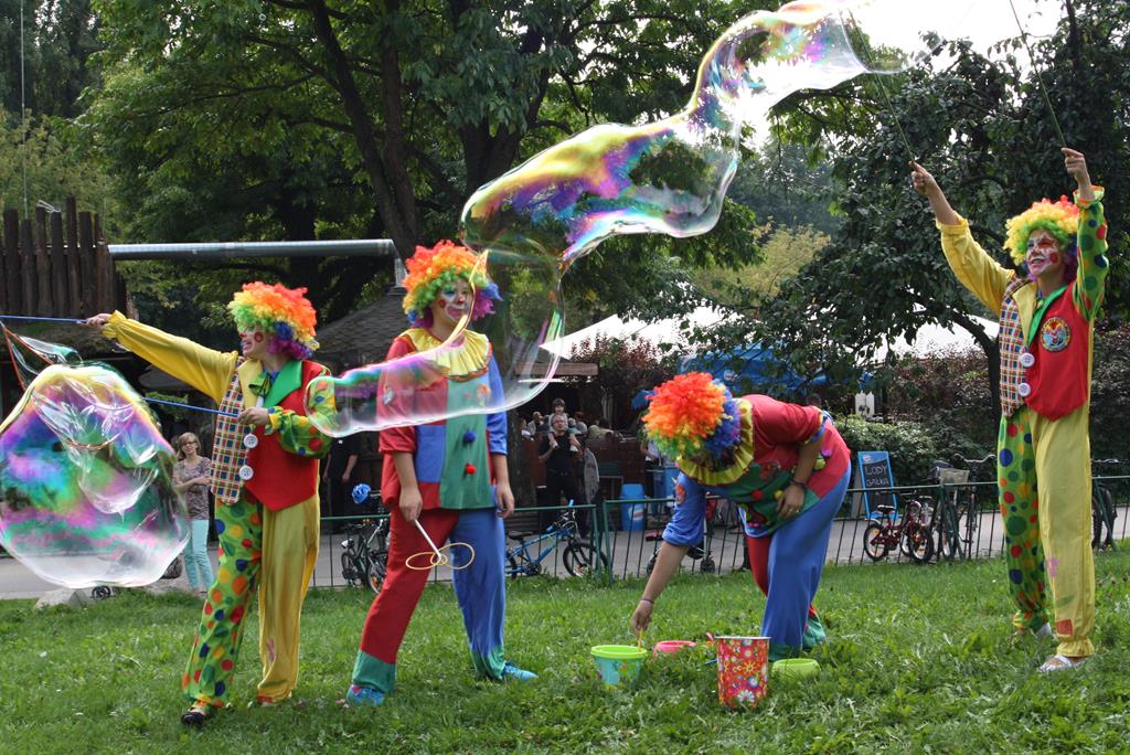 Klauni to świetna atrakcja nie tylko dzieci, ale również dorosłych. Zajmują się organizacją zabawy tanecznej, mogą puszczać bańki mydlane, malować buzie dzieci, pokazywać magiczne sztuczki, wykonywać z balonów różne przedmioty. Klauni najczęściej pełnią rolę animatorów zabaw. Pokaz klauna kosztuje około 500 złoty.