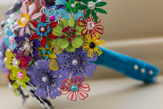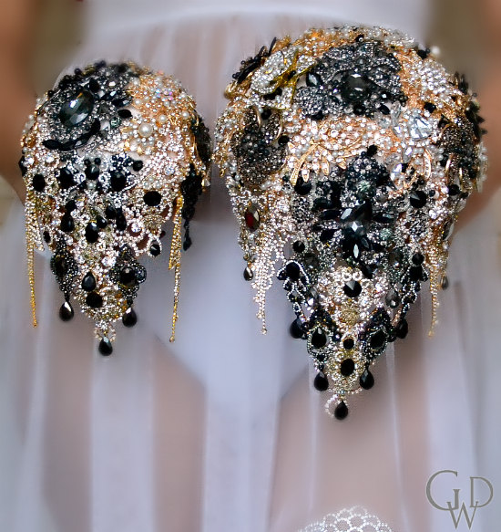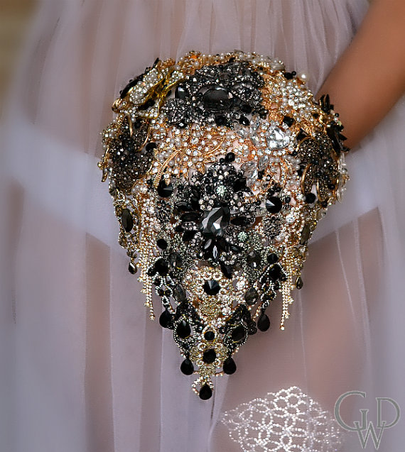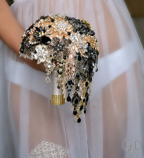 • bukiet ślubny z różnych elementów sztucznych – cyrkonii, koralików, cekinów: to kolejna bardzo ciekawa propozycja bukietów ślubnych wykonanych z sztucznych elementów. Nie da się zaprzeczyć, że jest to idealna alternatywa dla bukietów wykonanych z żywych kwiatów. Natomiast warto jest zwrócić uwagę na fakt, że takie rozwiązanie staje się coraz bardziej popularne. Bukiet może być delikatny i niewielki lub być bardzo okazały. Oczywiście wiele zależy od gustu przyszłej Panny Młodej.