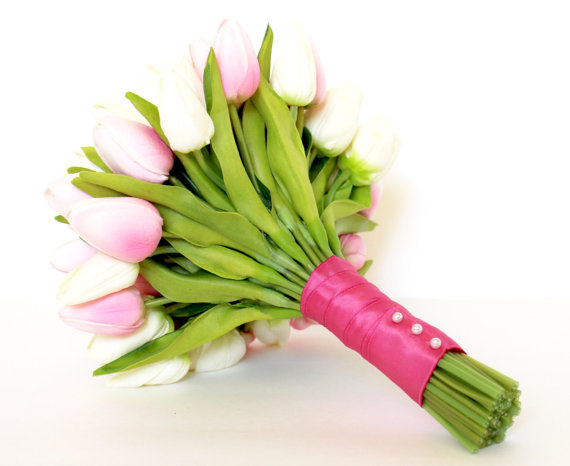 Kwiaty w zasadzie do zawsze towarzyszyły Pannom Młodym. Już w starożytności kobiety, które wychodziły za mąż zakładały na głowę wianek. Zwyczaj ten kultywowano do XV wieku. Bukiety ślubne przypominające obecne wiązanki pojawiły się na początku XIX wieku. Sama forma bukietu, jego kształt oraz kwiaty, z których był wykonywany ciągle się zmieniała. Pod koniec XIX wieku wyróżnić można było wiele różnych wersji bukietów, które znacząco różniły się między sobą. Tutaj należy również zwrócić uwagę na fakt, że w poszczególnych regionach świata wyróżnić można było różne tradycyjne wiązanki. Tutaj warto jest zwrócić uwagę na fakt, że obecnie różnice między trendami w poszczególnych regionach świata zatarły się. Można powiedzieć nawet więcej – w różnych krajach zauważyć można zwrot w kierunku tradycji różnych regionów świata, szczególnie tych odległych, charakteryzujących się wyjątkową kulturą i mocnym przywiązaniem do tradycji. Dzisiaj Panny Młode mają naprawdę szeroki wybór bukietów ślubnych. Trudno jest mówić o tradycyjnych wiązankach – bardziej pasuje tutaj słowo klasyczne. Tak więc wyróżnić można kilka ponadczasowych modeli bukietów, które można nazwać klasycznymi. Takim sztandarowym przykładem jest bukiet składający się z czerwonych róż, ozdobiony wyłącznie delikatną wstążeczką. Mówiąc o historii wiązanek warto jest zwrócić uwagę na jeszcze jeden fakt – moda ślubna bardzo szybko się zmienia. Dotyczy to również bukietów ślubnych. Floryści obmyślają nowe, wyjątkowe bukiety ślubne, wybierają coraz bardziej wyszukane rośliny. Nie da się zaprzeczyć, że świat wiązanek ślubnych bardzo szybko się zmienia. To co było jeszcze nie dawno modne, dziś już odchodzi w zapomnienie. Oczywiście należy pamiętać o tym, że wygląd wiązanki ślubnej w dużej mierze zależy od samej Panny Młodej. Warto jest zauważyć jedną kwestię – coraz częściej zdarza się tak, że przyszłe mężatki mają bardzo mocno sprecyzowane wymagania co do wyglądu bukietu – wiedzą z jakich kwiatów ma się składać, dodatków. W związku z tym można wyróżnić bardzo dużo indywidualnych bukietów ślubnych. Mówiąc o historii bukietów ślubnych trudno jest nie wspomnieć o zupełnie nowym trendzie, jakim jest pojawienie się bukietów ślubnych składających się wyłącznie z sztucznych elementów. Mowa tutaj o papierowych wiązankach, ale również bukietach składających się z koralików, cyrkonii, kamieni.