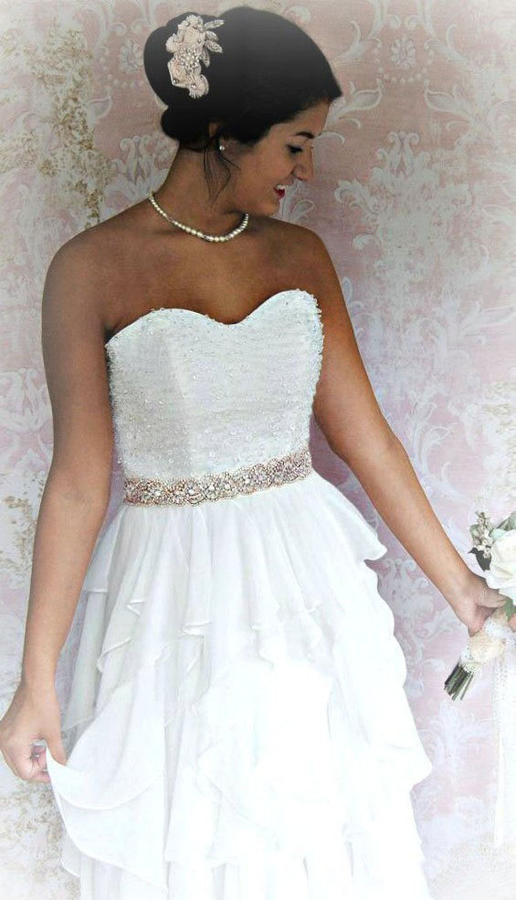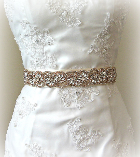 Przepiękny pasek, wykonany z cyrkonii. Idealna ozdoba dla prostej sukni, która nie zawiera żadnych elementów ozdobnych.