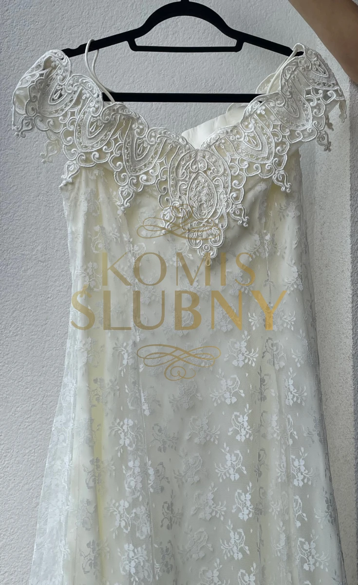 Model łączy w sobie klasyczną elegancję i komfort noszenia. Suknia jest lekka, a jej wykonanie z koronki nadaje jej ponadczasowy charakter. Idealna dla osób ceniących subtelność i naturalność.