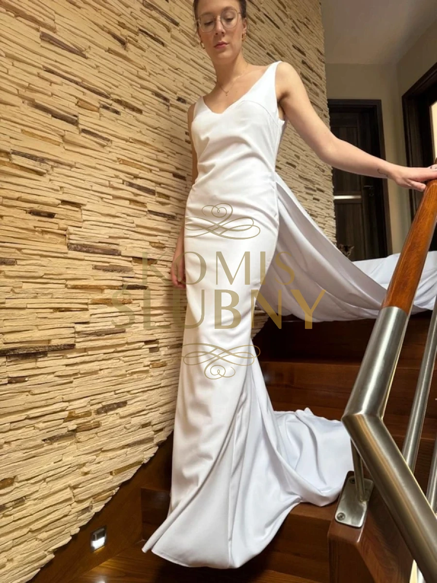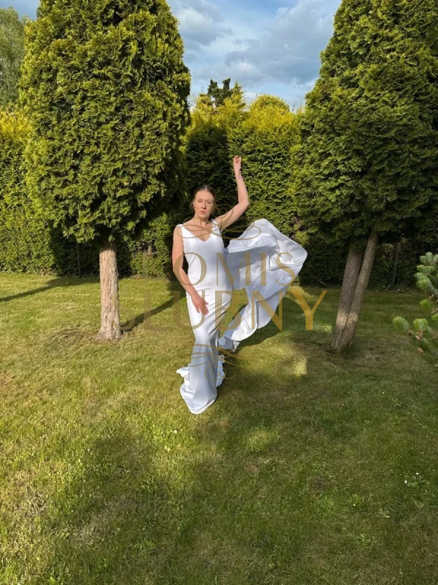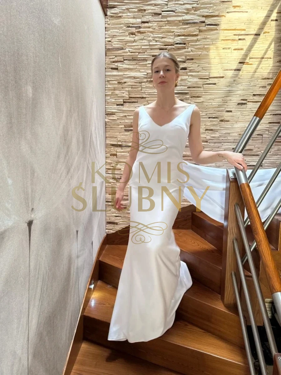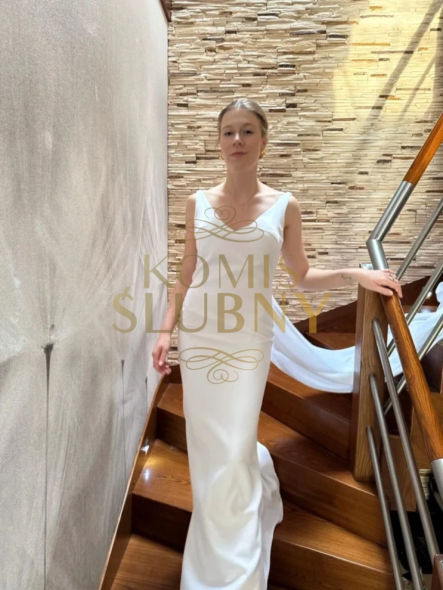 Ta suknia to jedna z moich wyborów podczas poszukiwań tej jedynej – zamówiłam ok. 10 modeli, żeby porównać na żywo. Ostatecznie wybrałam inną, a ta (i kilka innych) pozostają zupełnie nowe – była tylko przymierzona w domu.