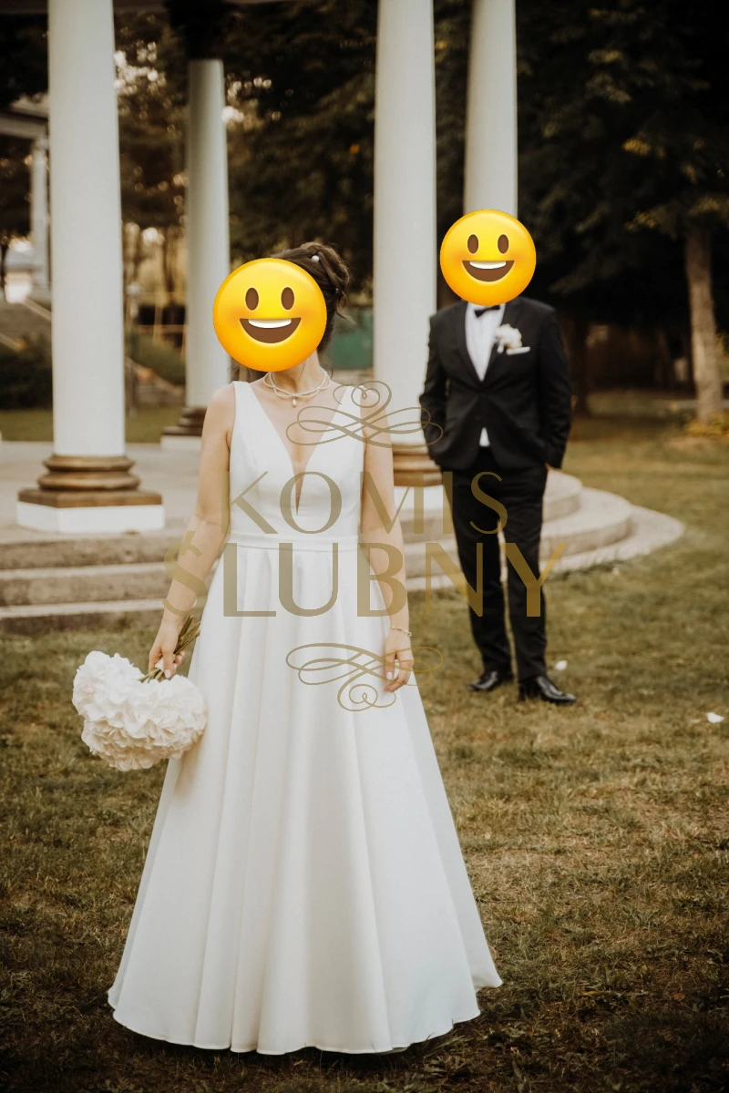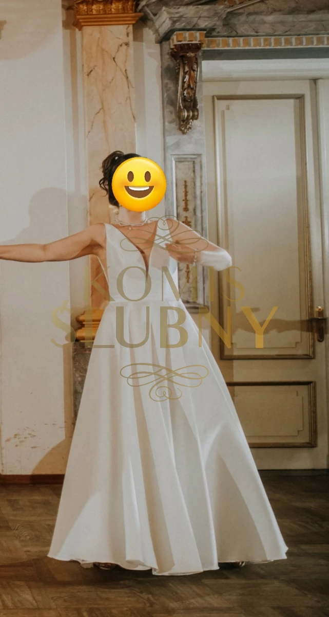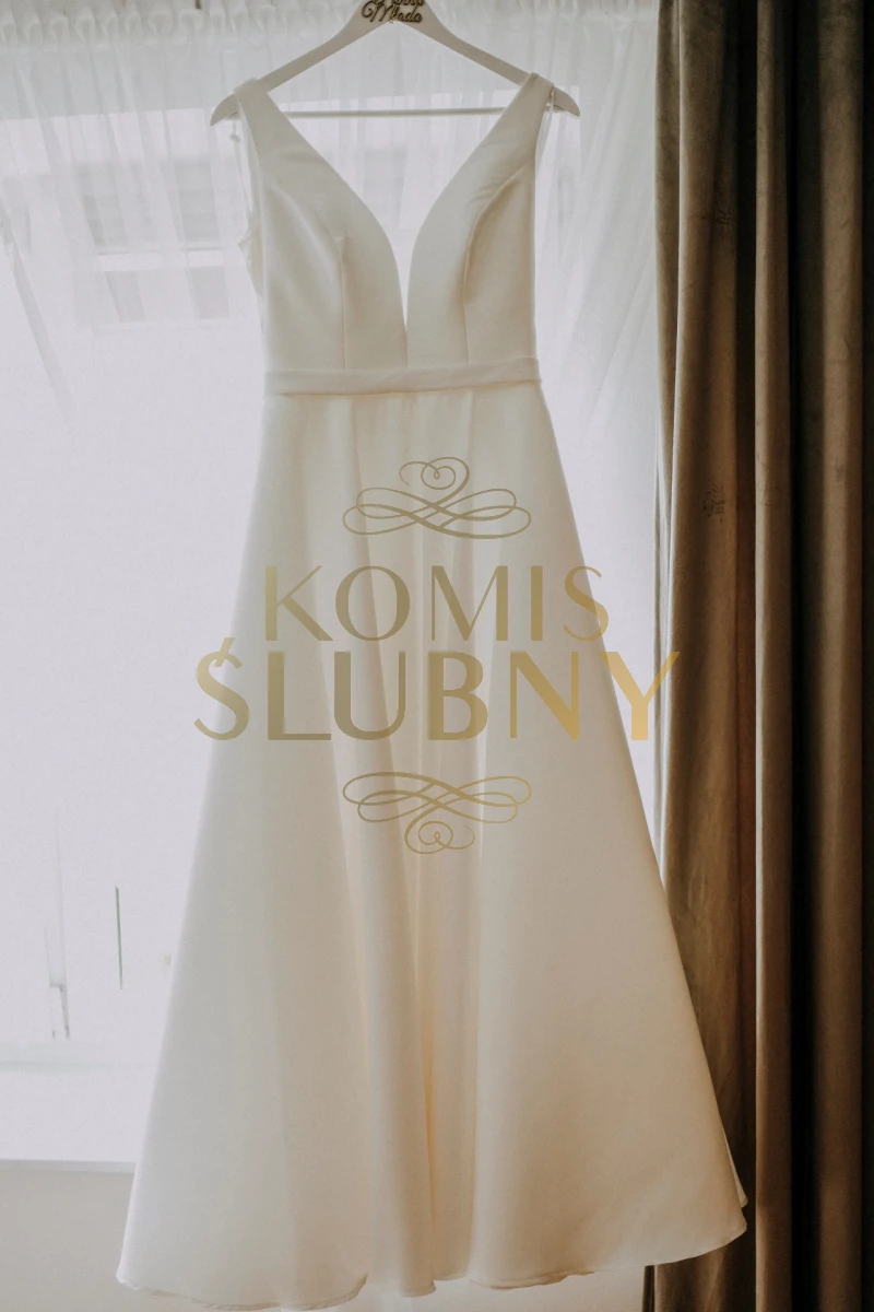 Nowa suknia z salonu Adel, raz założona na zaledwie pięć godzin, klasyczna, gładka, z tyłu sznurowana dzięki czemu można dopasować ją do ciała, raczej na średni/większy biust, posiada delikatną, cielistą siateczkę przy dekolcie oraz pod pachami, posiada podszewkę
