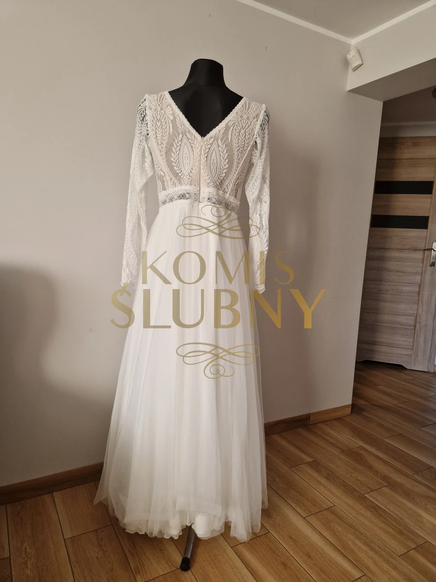 Mam na sprzedaż sukienkę ślubną zakupioną w salonie sukien ślubnych Alicja w Starogardzie Gdańskim. Byłam 1 właścicielką. Sukienka jest po praniu chemicznym. Standardowo noszę rozmiar 44/46.