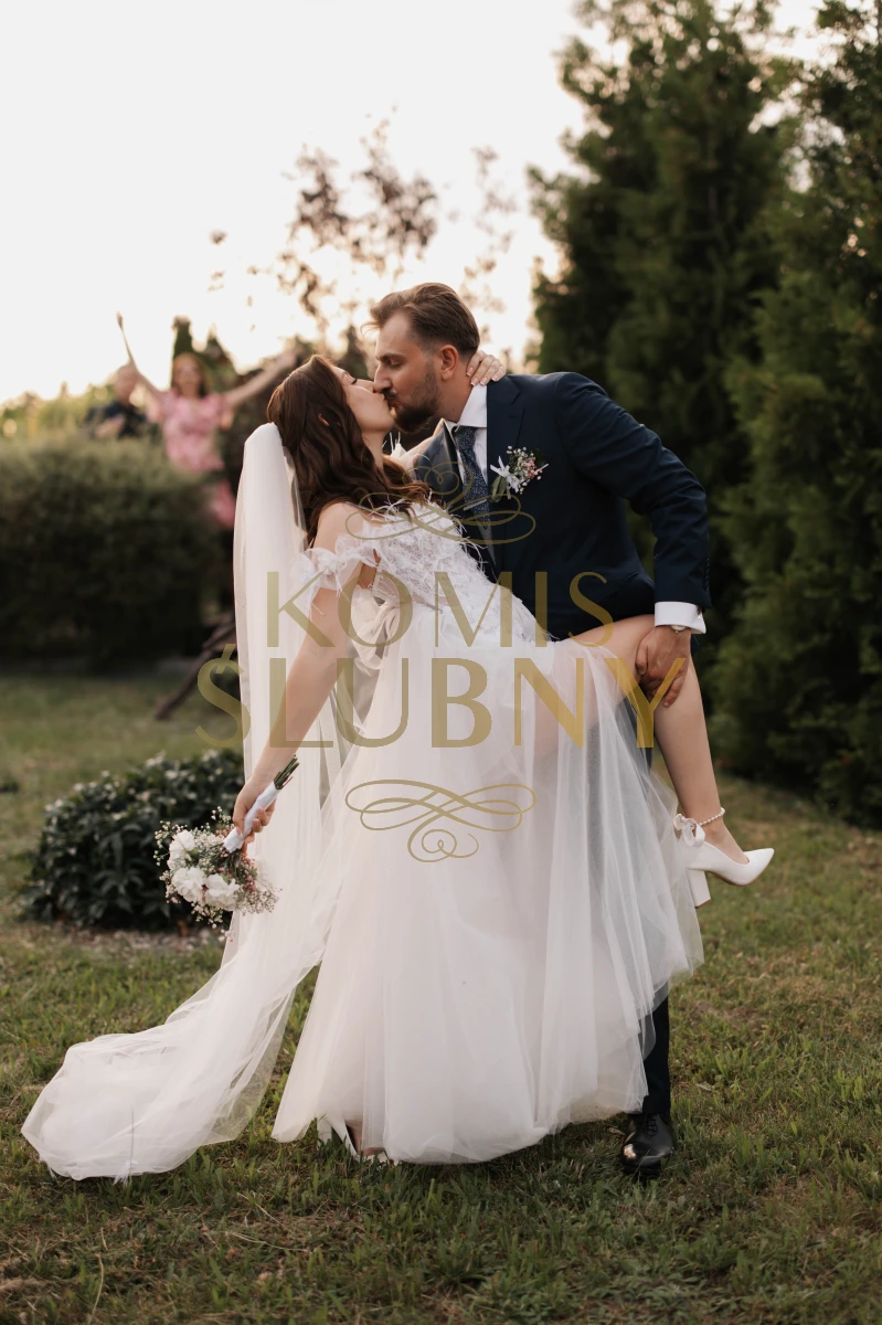 Jedyna wada to dwie małe dziurki w jednej warstwie tiulu, niewidoczne na pierwszy rzut oka, trzeba się dobrze doszukać żeby to zobaczyć ponieważ są w wewnętrznej warstwie tiulu. Cena wyjściowa 4 tysiące do negocjacji
