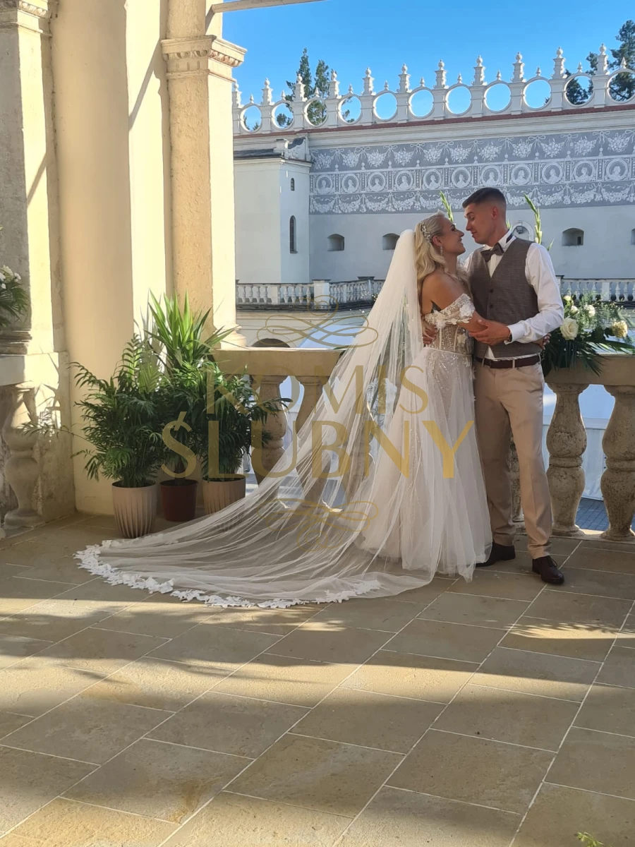 Laurelle model na bazie Siena. Robi spektakularny efekt i pięknie prezentuje się na żywo oraz na zdjęciach rozmiar 36, długość na 164cm + 9cm obcas
