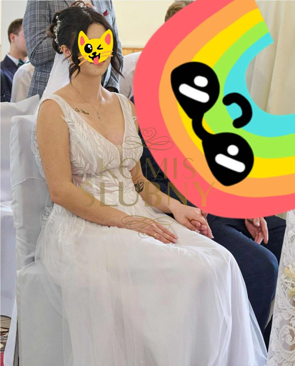 Suknia ślubna dla Pani, koloru białego, w rozmiarze 40. Używana, lecz w idealnym stanie. Idealna na wyjątkowy dzień w życiu. Zrobiona na obcas 6cm bardzo Wygodna wejdzie na mniejszy brzuszek ciążowy