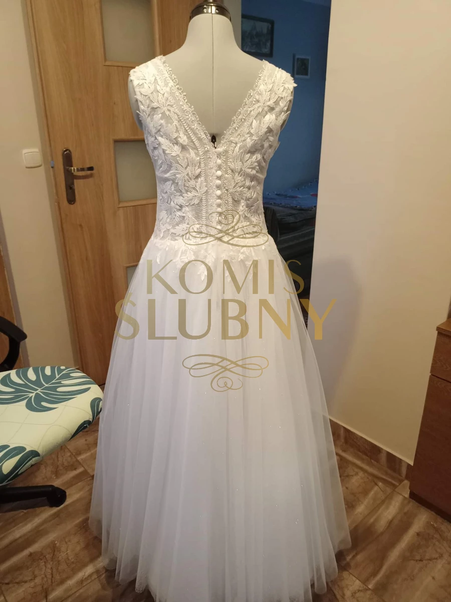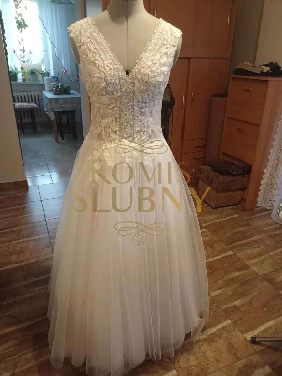 Sprzedam suknię ślubną z 2022 roku, szytą przez krawcową. Rozmiar 38, bez wszytych miseczek( miałam biustonosz cielisty), z rozcięciem na nogę. Suknia jest zaoinaba na zamek i ozdobne guziczku, gorset nue usztywniany. Więcej informacji udzielę telefonicznie.