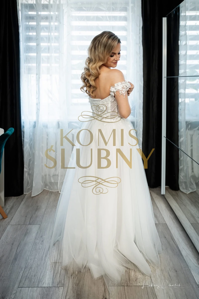 Sprzedam suknie ślubną. W typie litery A trochę księżniczki. Suknia gorsetowa w rozmiarze 38/40. Z tyłu sukni wiązanie na plecach i suwak. Suknia posiada dwie pary ramiączek-jedne opadające na ramiona kwiaty, drugie do zmiany podczas tańca, wykonane z koralików na tasiemce.