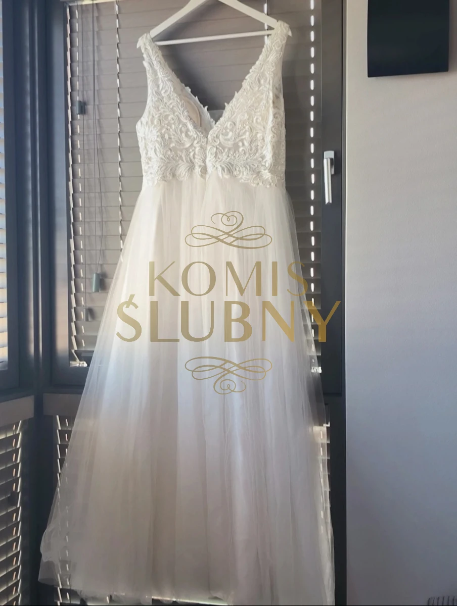 Sprzedam suknię ślubną założoną po oczepinach na parę godzin.Suknia pięknie i bogato zdobiona na górze,bardzo wygodna i pięknie się prezentuję.Sukienka na wzrost 164 cm i miałam do niej zarówno szpilki jak i trampki rozmiar 40/42.Po więcej informacji zapraszam na priv.Cena 800 zł.