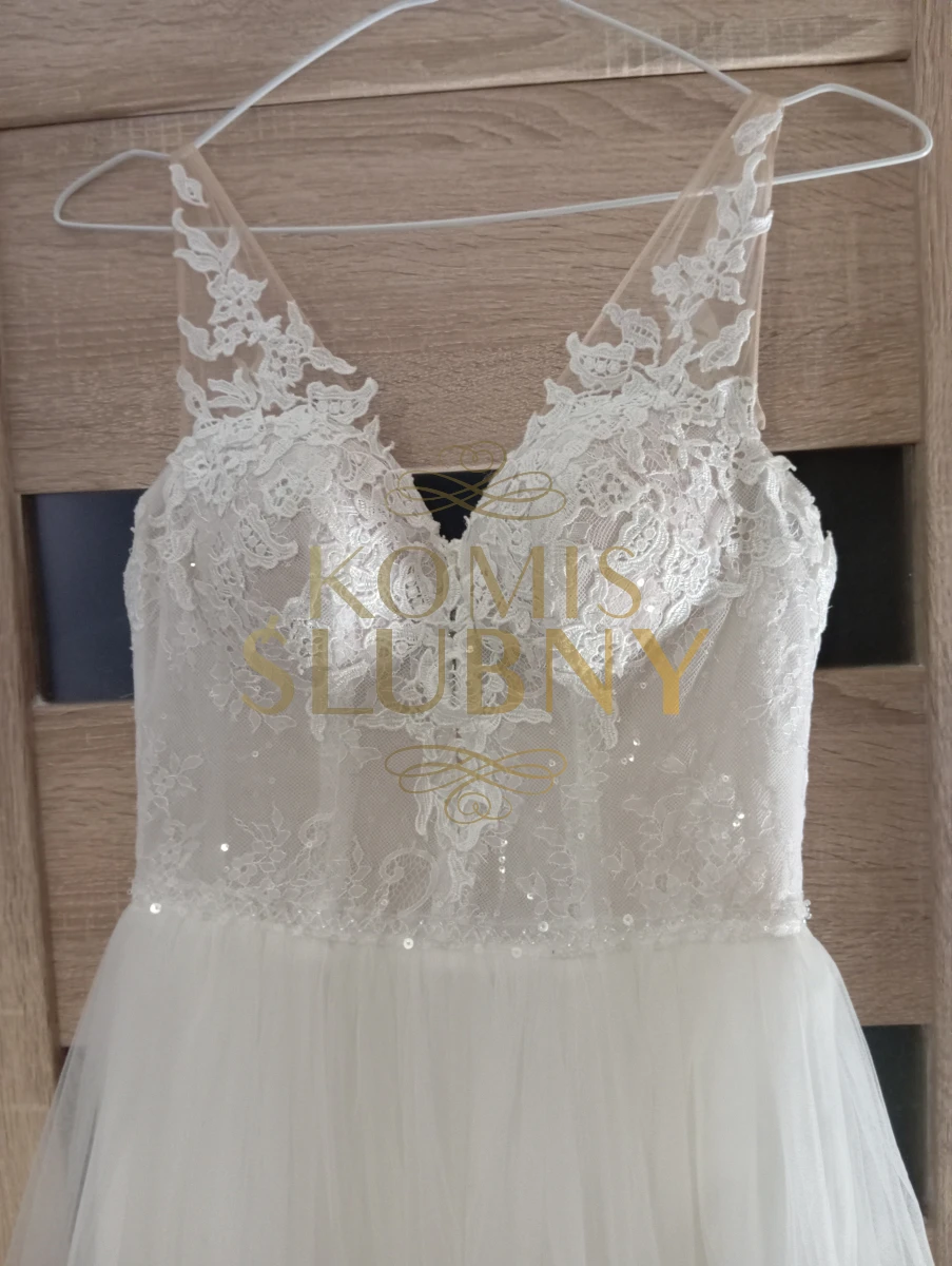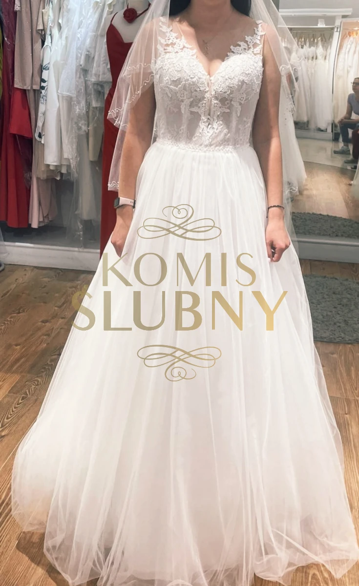 Sprzedam Suknię Ślubną w stylu litery A . Suknia została zakupiona w salonie ślubnym w roku 2023 . Stan sukni bardzo dobry . Posiadam do sukni welon i halkę , koło .