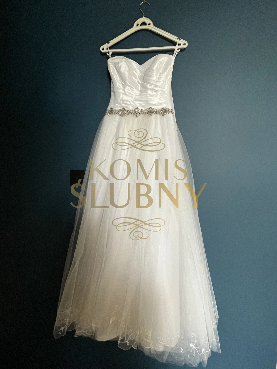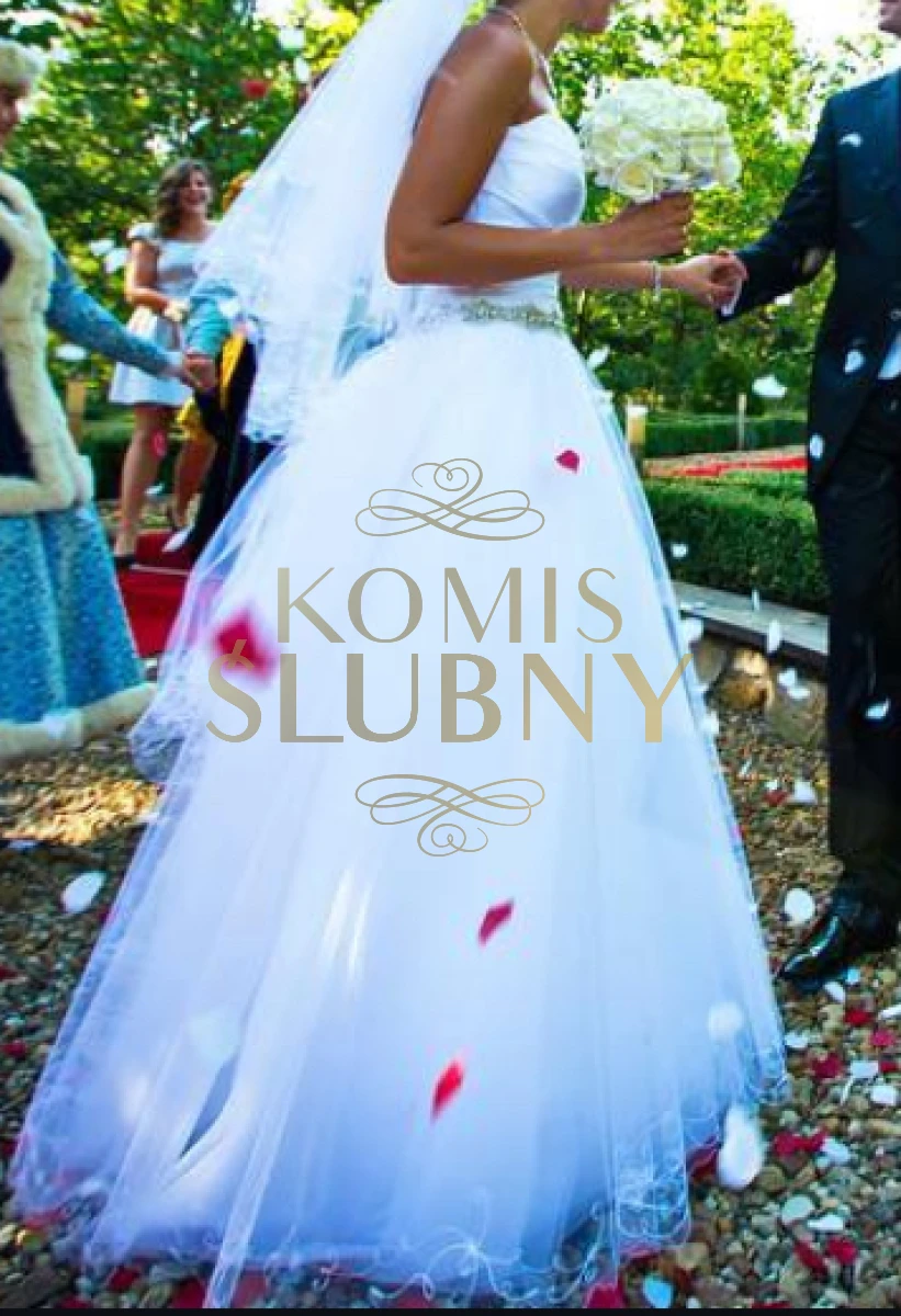 Suknia ślubna szyta na zamówienie w salonie Julia Rosa. Nie ma drugiej takiej. Rozmiar XS. Przepiękna. Suknia była czyszczona chemicznie po ślubie, natomiast wisiała długo w pokrowcu w szafie i wymaga odświeżenia. W razie zainteresowania podam wszystkie wymiary. Cena 1500pln.