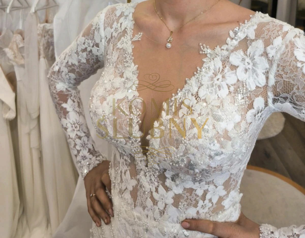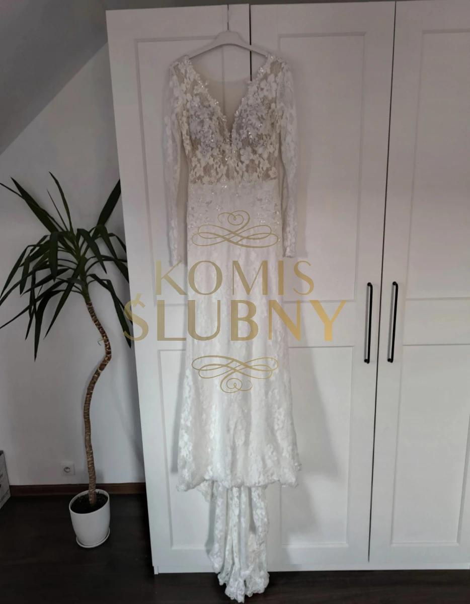 Sprzedam bardzo kobiecą suknię ślubną, która zachwyciła wszystkich! Panna Młoda będzie się w niej czuła wyjątkowo. Podkreśla dekolt, robi talię osy, a tren jest wyjątkowo lekki.