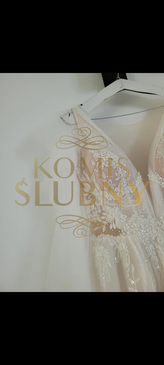 Sprzedam suknię ślubną z dodatkowym tiulem na ramionach. Dodaje to elegancji ale można je również odpiąć w każdej chwili. Suknia wyprana, jednak na wewnętrznej podszewce ma delikatne plamki, zupełnie niewidoczne. Leciutka, nosi się świetnie. Kupiona w tamtym roku w salonie Nicole. Szyta na 167 cm plus 6 cm obcasa.
