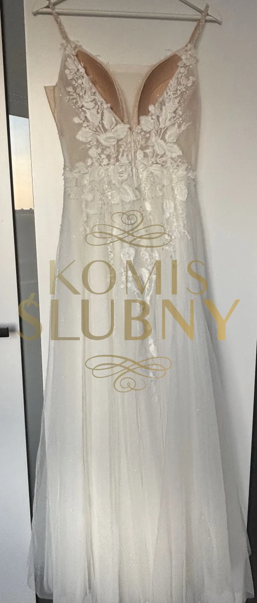 Suknia jest w bardzo dobrym stanie i gotowa, by uszczęśliwić kolejną Pannę Młodą w tym wyjątkowym dniu.