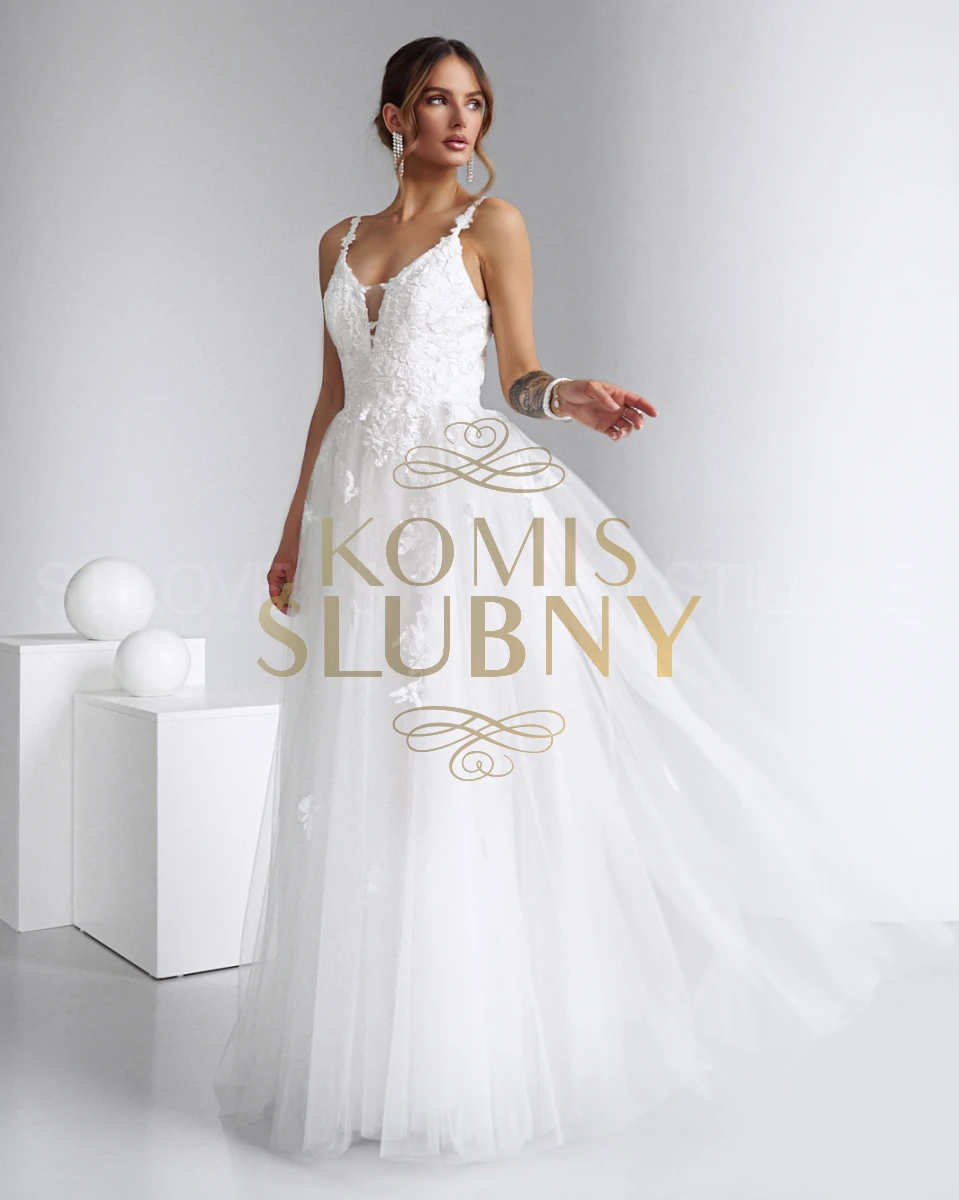 - Na cienkich ramiączkach również znajdują się kwiatowe hafty