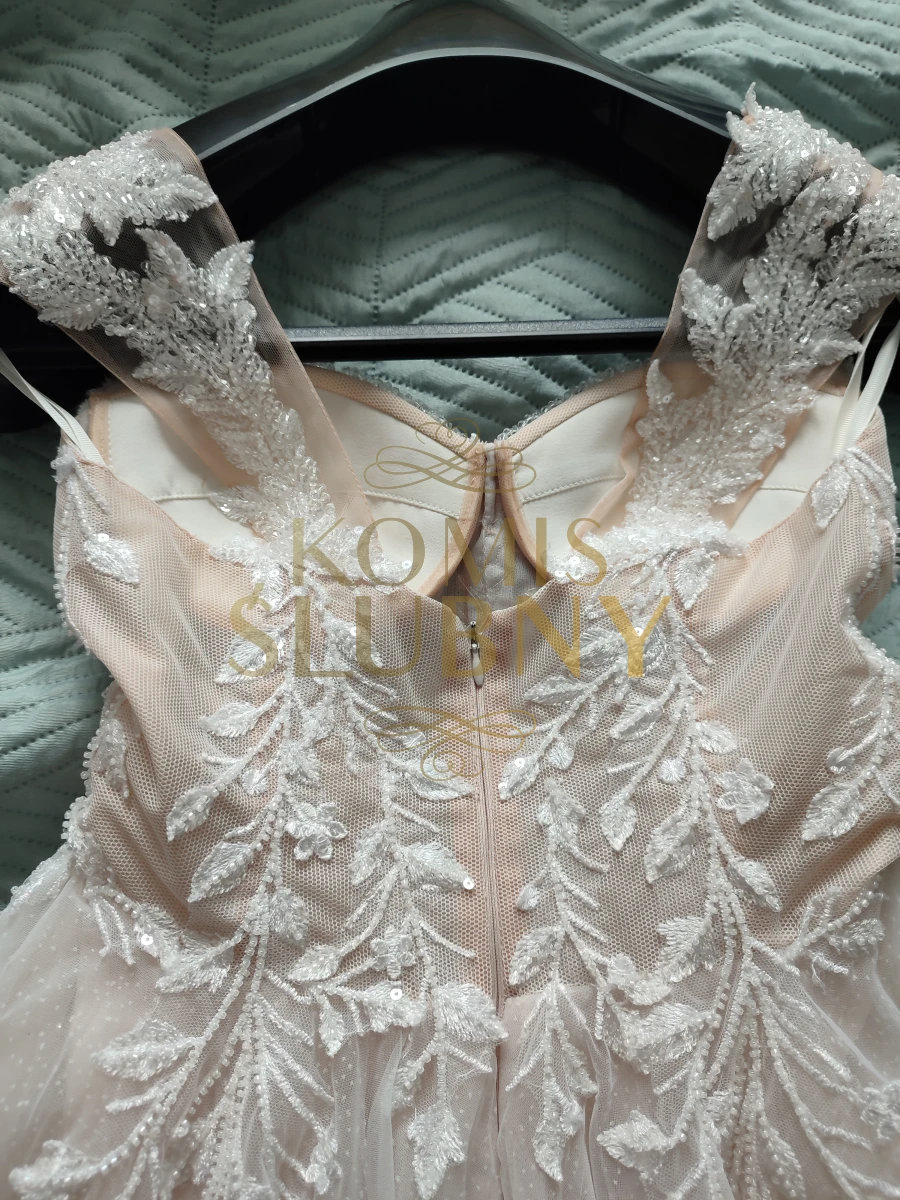 Suknia była na 160 cm wzrostu + obcas 5 cm ( z kołem), bez koła zyska parę cm. Suknia została wyprana i wyprasowana w pralni.